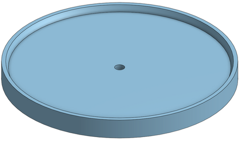 The slime bottom mold is comparatively much simpler than the slime dome mold, being essentially a single flat disk the silicone will be poured into. There are two variants of the bottom mold, one with a hole to align the silicone tubing to be used with the water pumping for the breathing slimes, and one flat mold for the jumping slime.